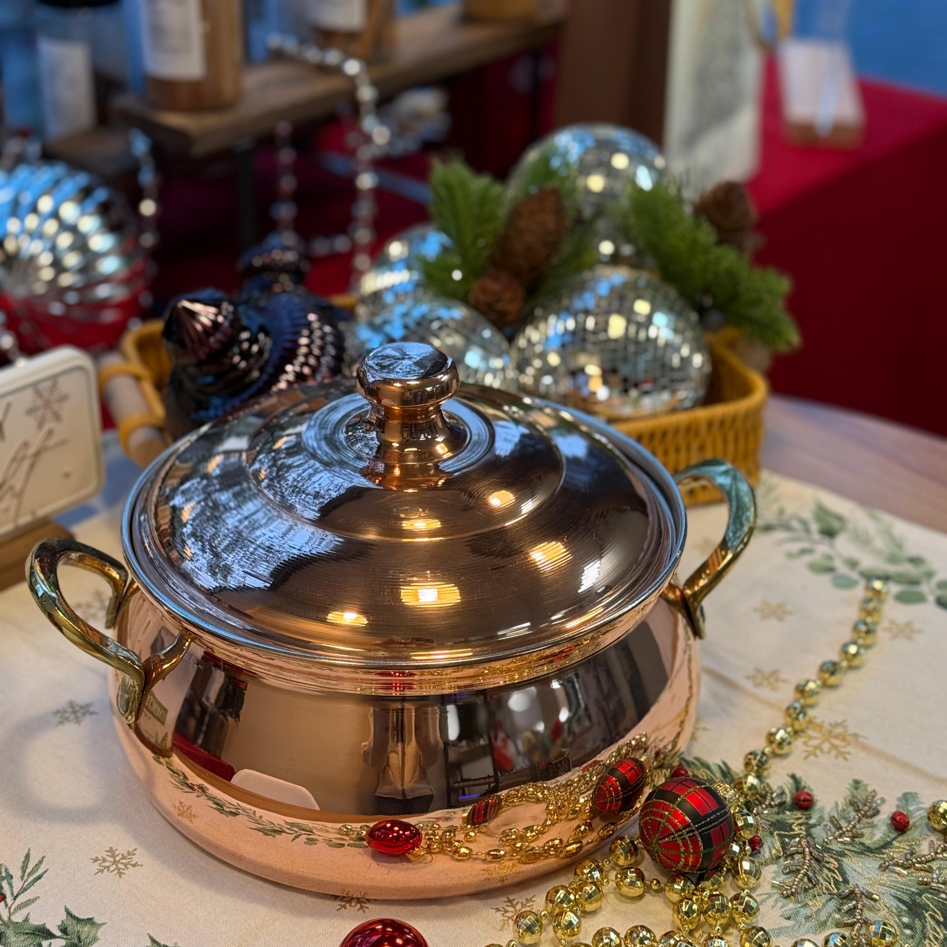 Cook rich, flavorful dishes with our Copper Pot No:4 – 23cm, handcrafted from 100% pure copper for superior heat conductivity and even cooking. Perfect for stews, soups, rice dishes, and slow-cooked recipes, this versatile pot is a staple in traditional Turkish and Mediterranean kitchens.