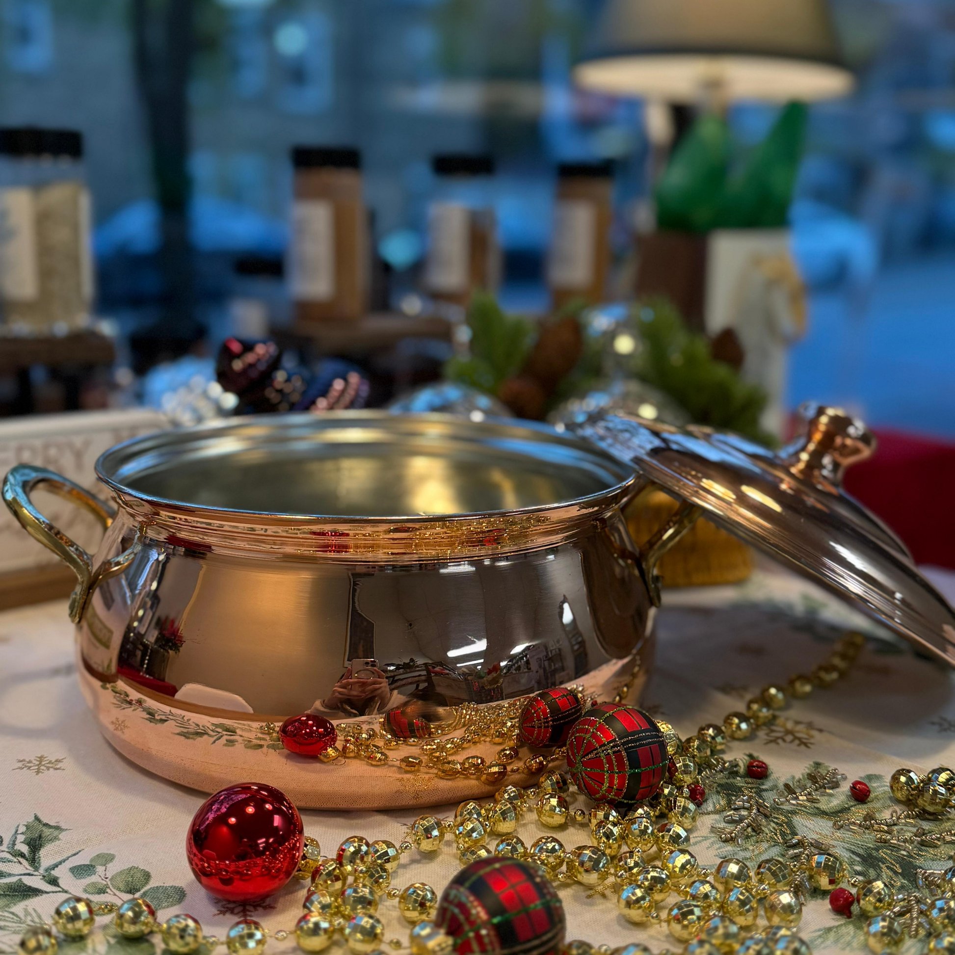 The food-safe tin lining ensures safe cooking while preserving the natural taste of your ingredients. Its hand-hammered finish and sturdy handles make it as beautiful for serving as it is functional for cooking.