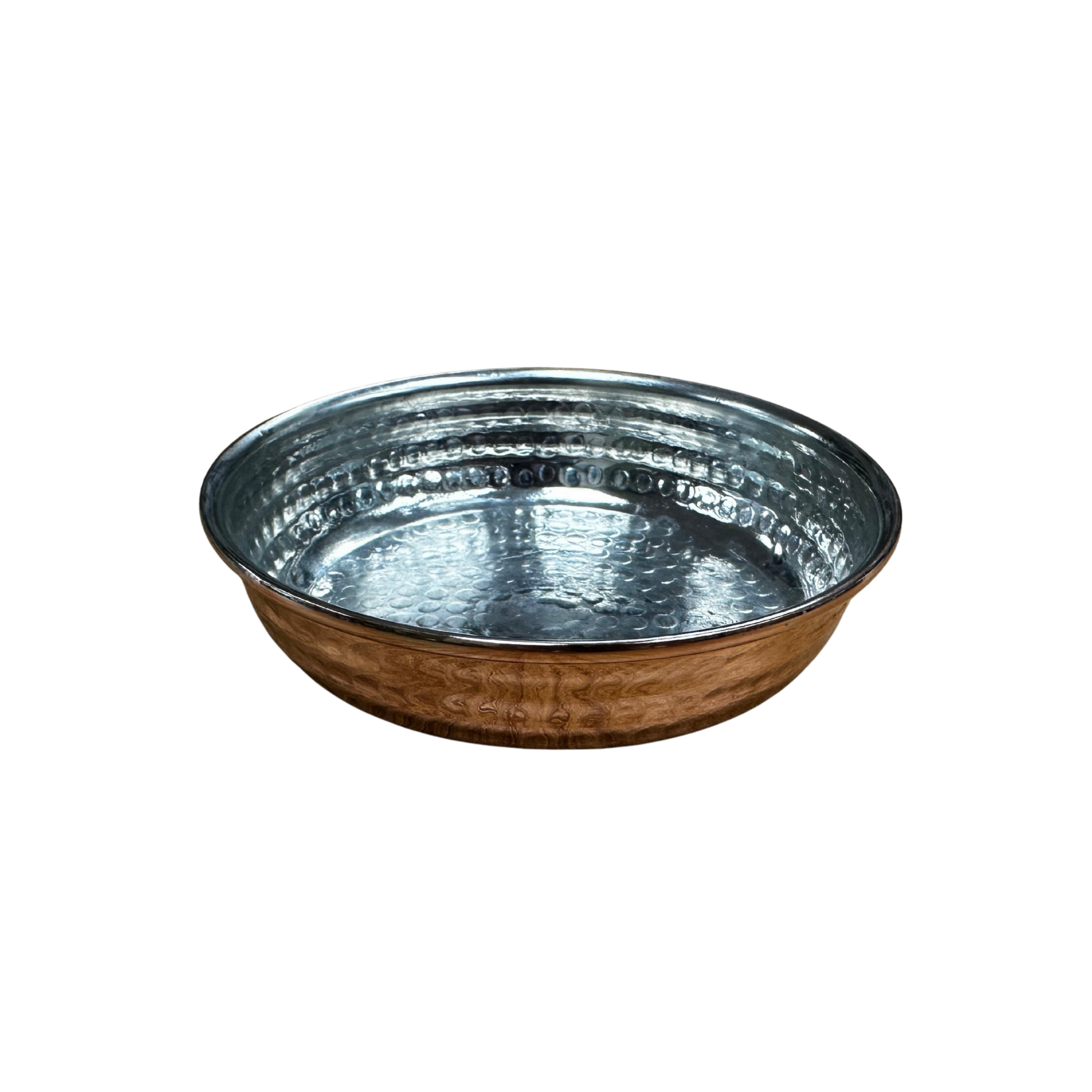 Add a touch of tradition to your table with this handmade 12cm copper snack bowl, also known as a çerezlik in Turkish. Perfect for serving nuts, dried fruits, candies, olives, or even small condiments, this bowl is crafted from solid copper and features a polished, hammered finish that enhances any setting.